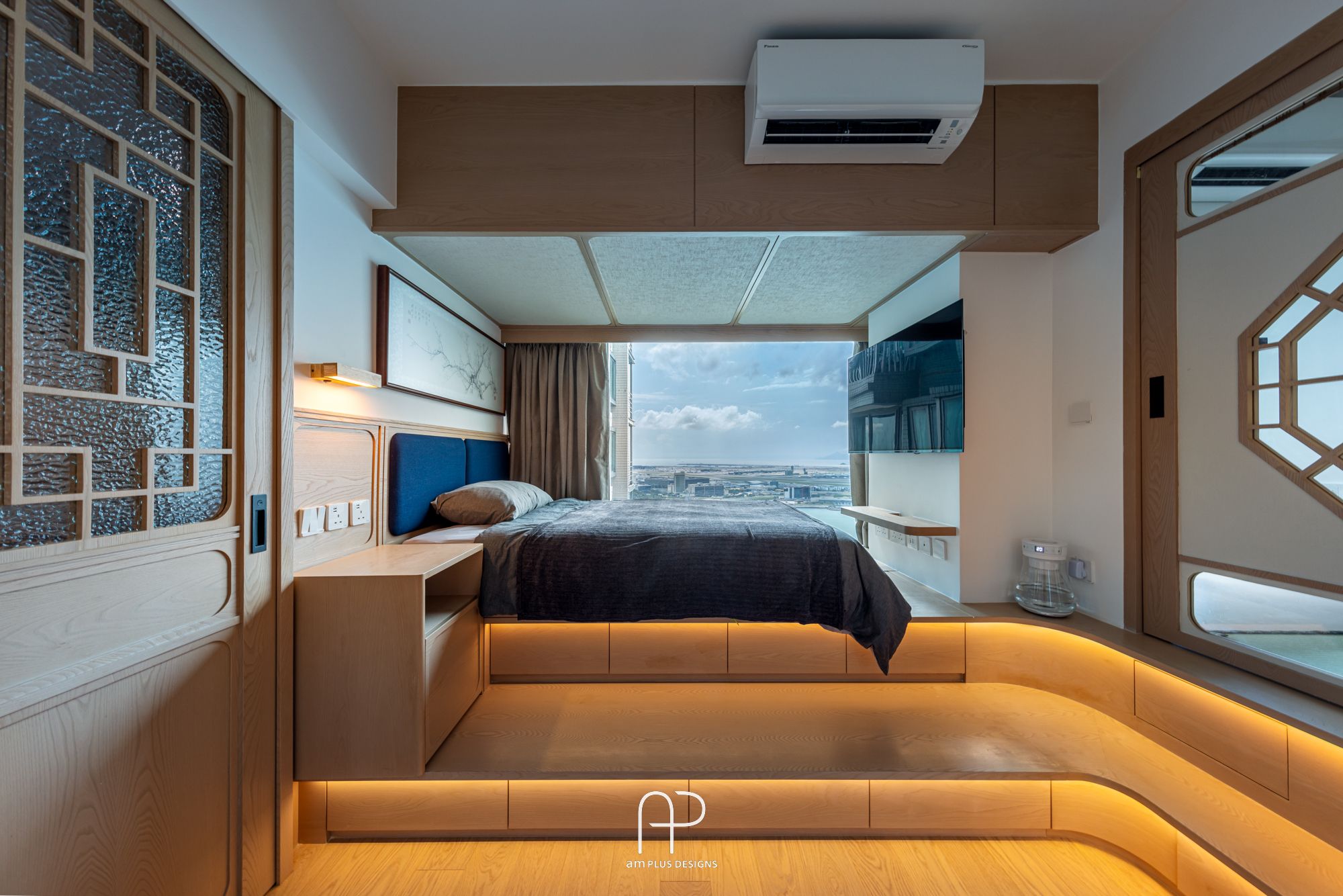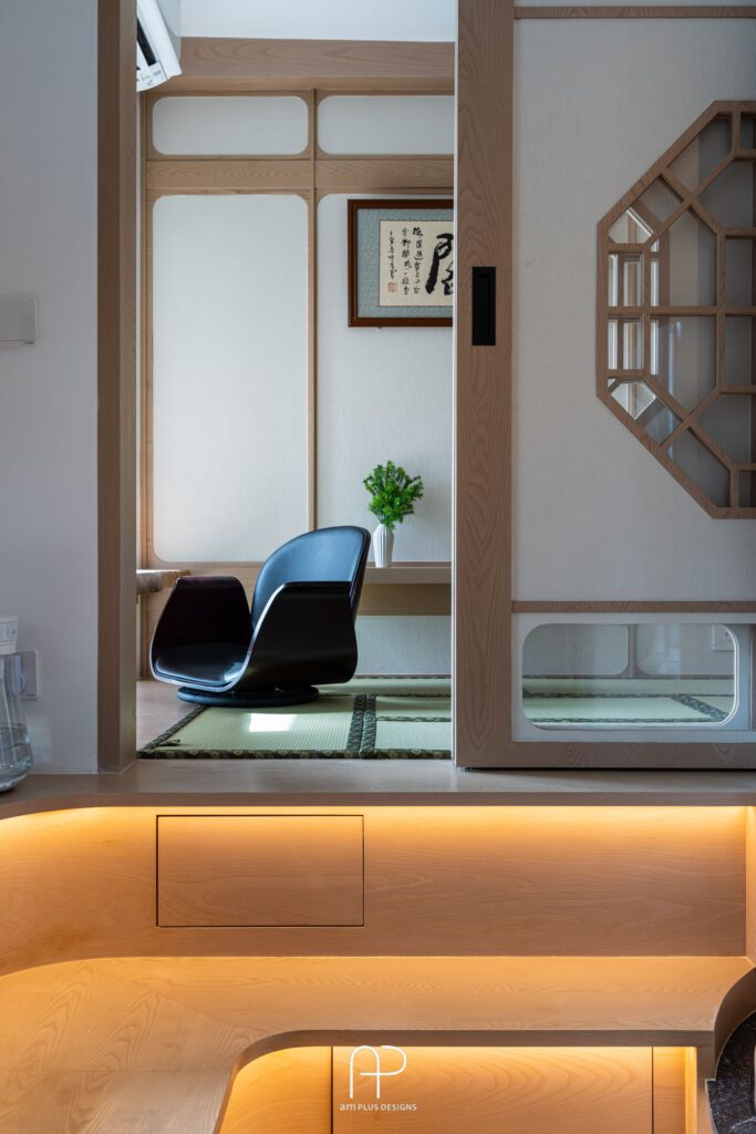 • 日式禪意元素: 空間融入榻榻米和地台設計,增添日式禪意,同時兼具收納功能。